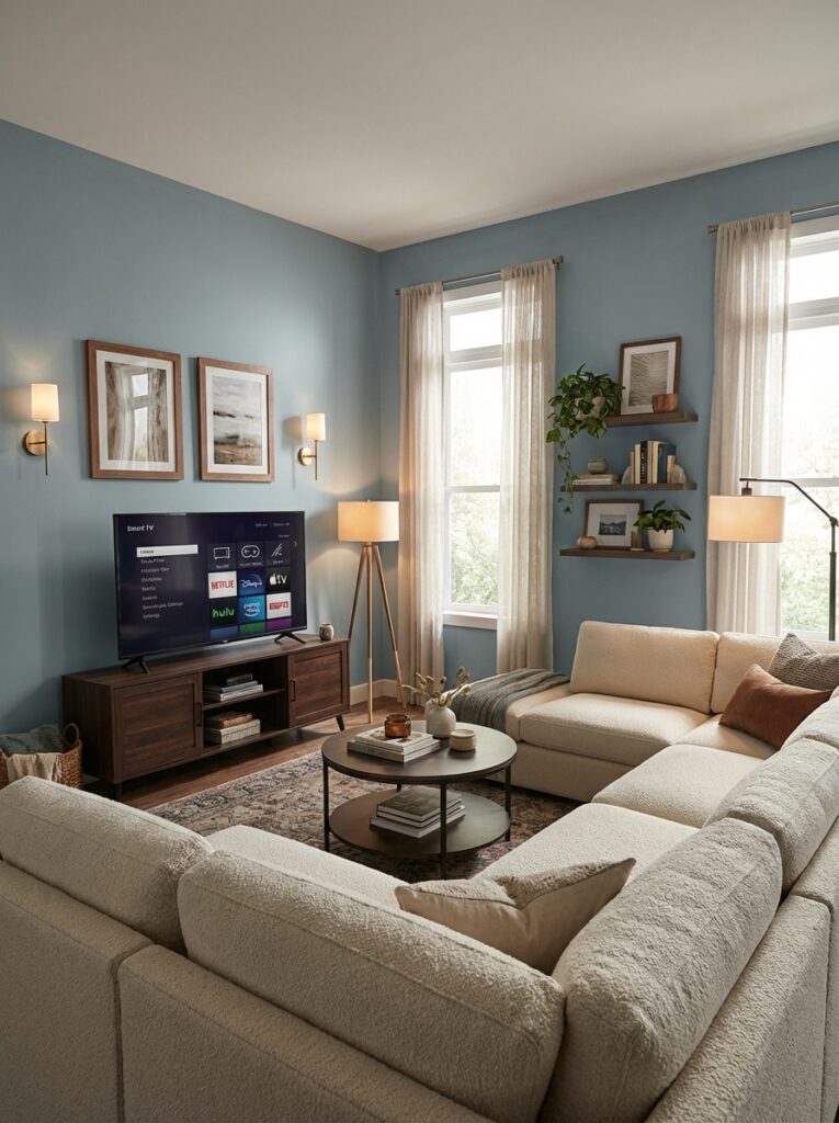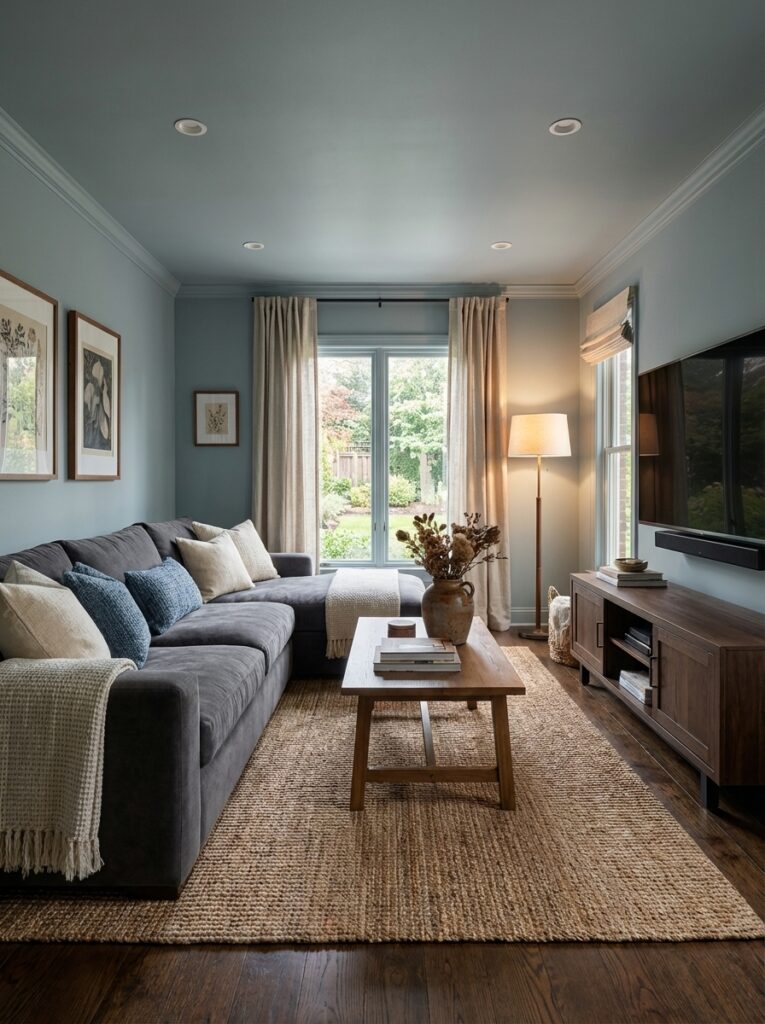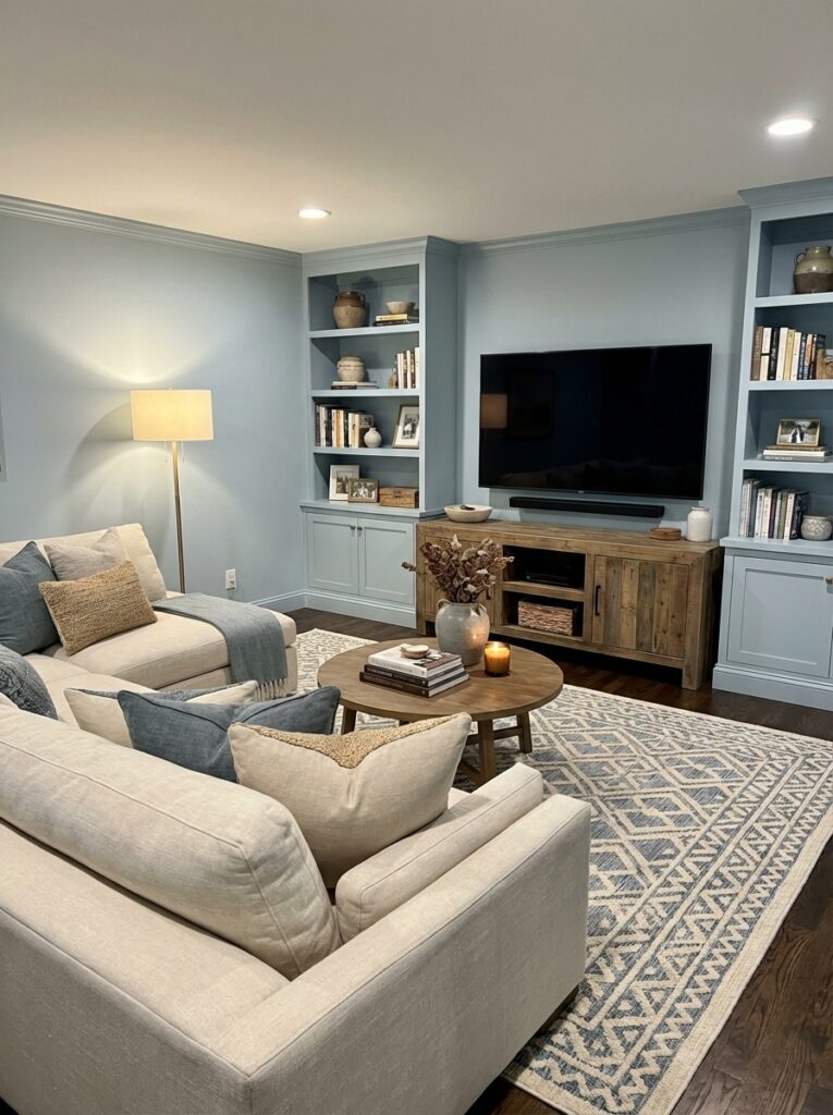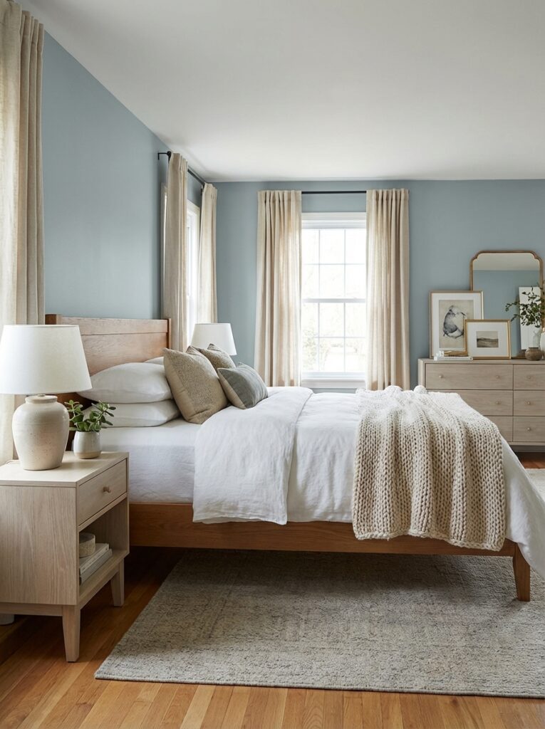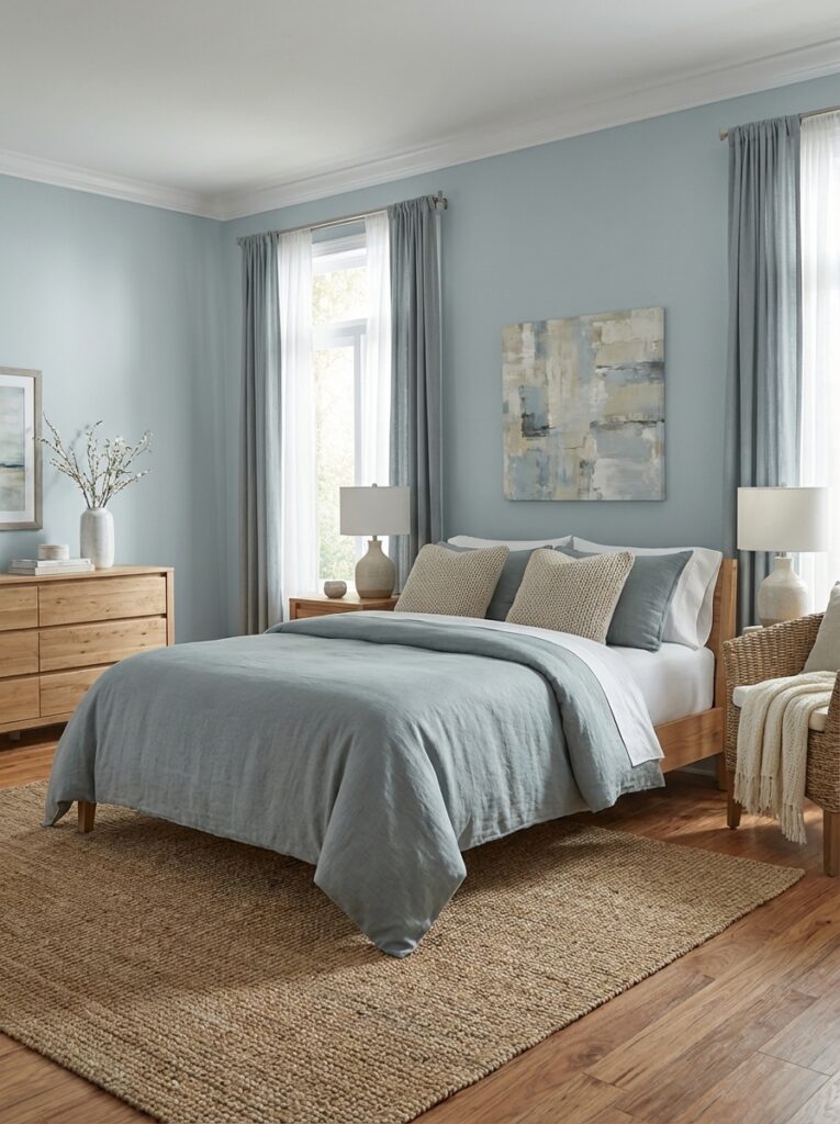 It’s one of those shades that instantly makes a room feel lighter, fresher, and more peaceful—without being boring or overly trendy. Think soft coastal mornings, misty horizons, and that quiet, relaxing vibe you wish your home had every day.