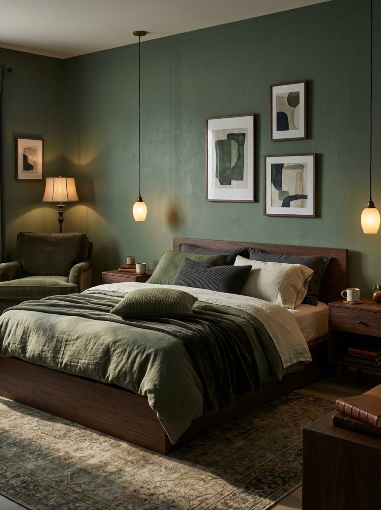 1. Full Sage Green Walls for a Cozy Cocoon Bedroom