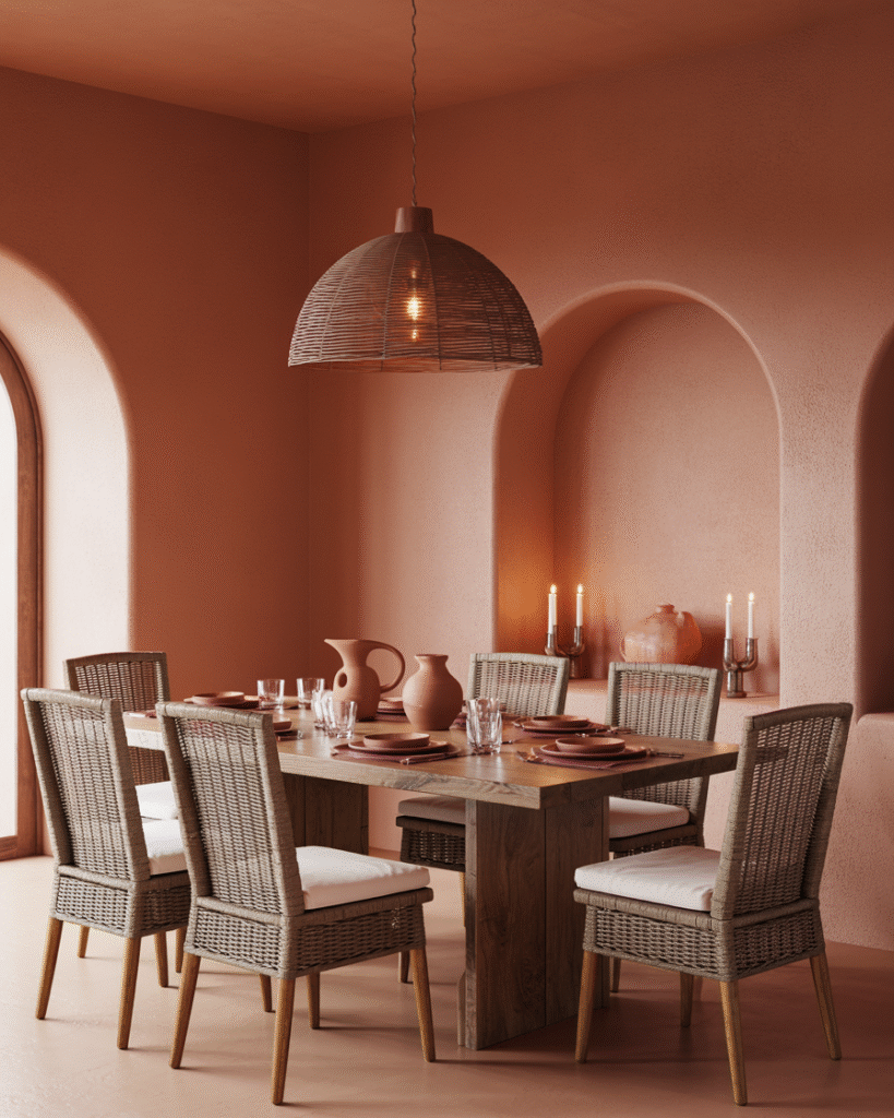 Soft terracotta, warm browns, and muted greens bring a cozy, grounded feel to any room. These nature-inspired hues create a relaxing, inviting atmosphere that’s perfect for living rooms, bedrooms, and even kitchens.