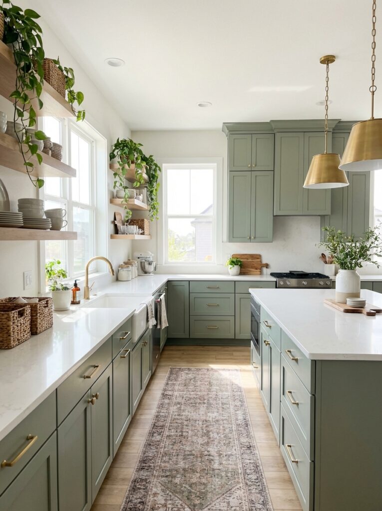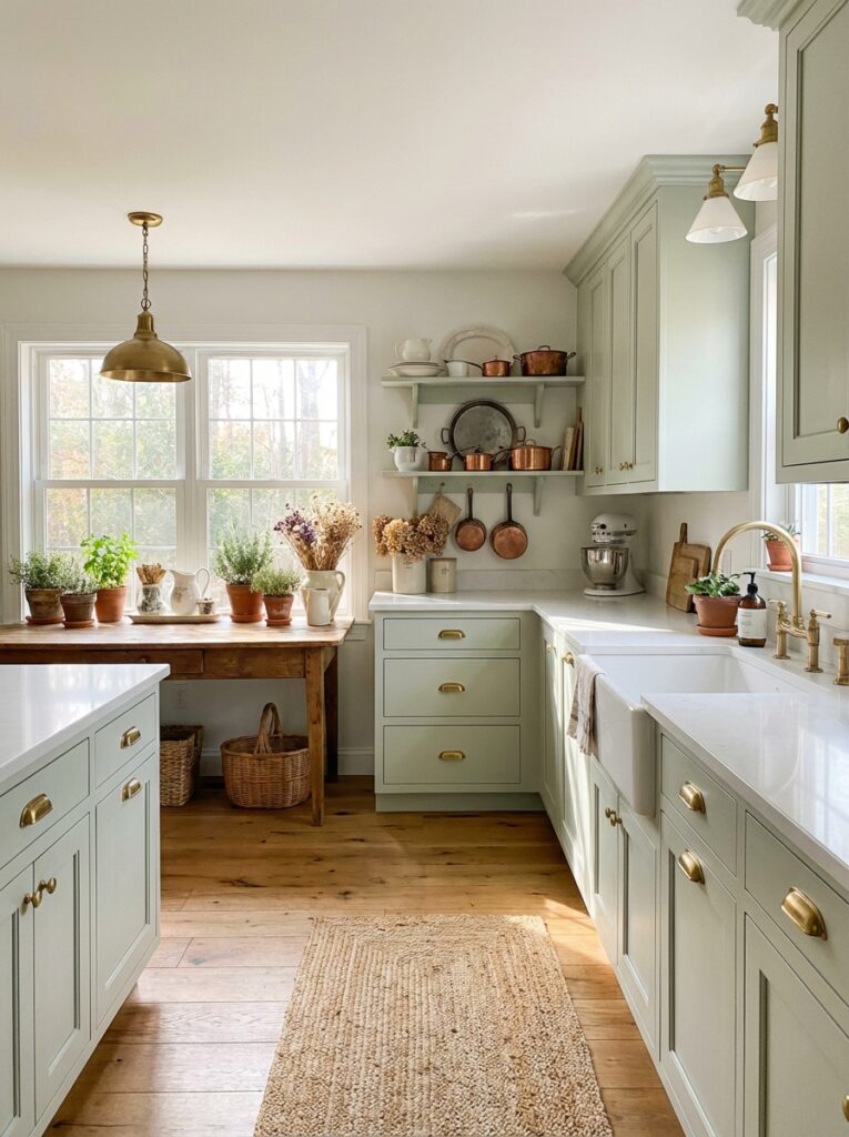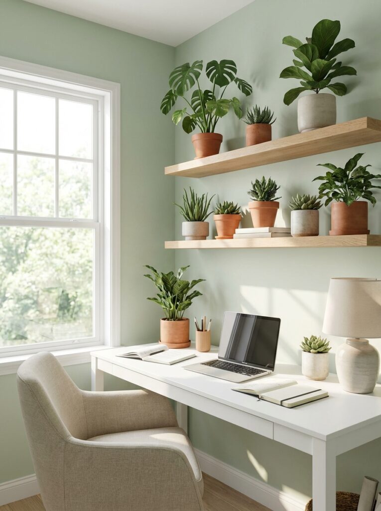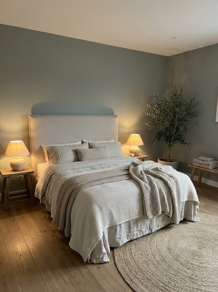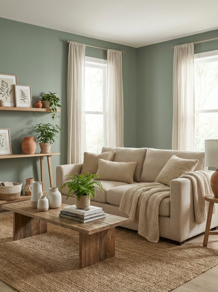 - Gray floors → cool sage (River Mist, Nature’s Gift)